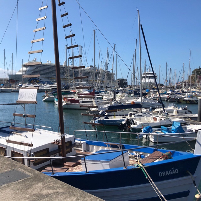 Im Hintergrund eins von drei Kreuzfahrtschiffen, die zZt in Funchal liegen