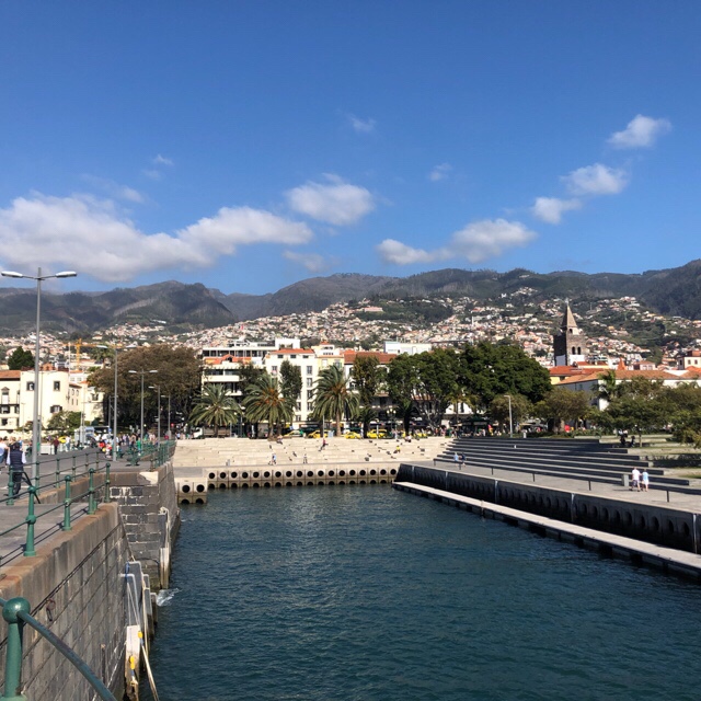 Auf dem Weg von Santa Cruz nach Boaventura haben wir einen kurzen Stopp in Funchal gemacht, da wir zuvor ein relativ teures Hotelzimmer für unsere letzten beiden Tagen auf der Insel über Booking.com geblockt hatten, wollten wir uns eine Unterkunft anschauen, die im Reiseführer stand. Nach einer etwas verwinkelten Anfahrt, haben wir direkt vor diesem kleinen Hotel geparkt und dasselbe auch sofort gebucht für das Wochenende vor unserem Abflug. Nach getaner Arbeit sind wir dann einmal die Straße runter bis zum Hafen gelaufen. Der erste Eindruck ist auf jeden Fall top — wir haben ja in zwei Wochen nich Zeit die Stadt genauer zu erkunden.