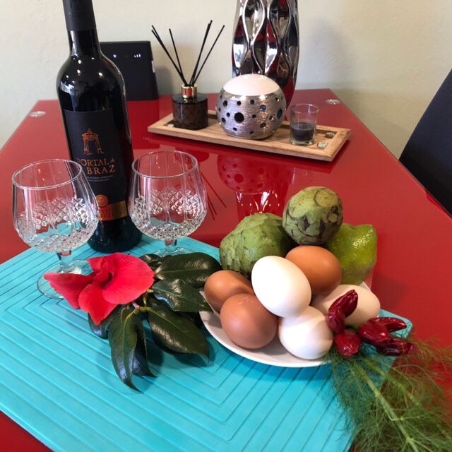 Blick runter ins Tal über die landwirtschaftlichen Flächen. Heute gab es wieder einige Zimtäpfel vom Vermieter.