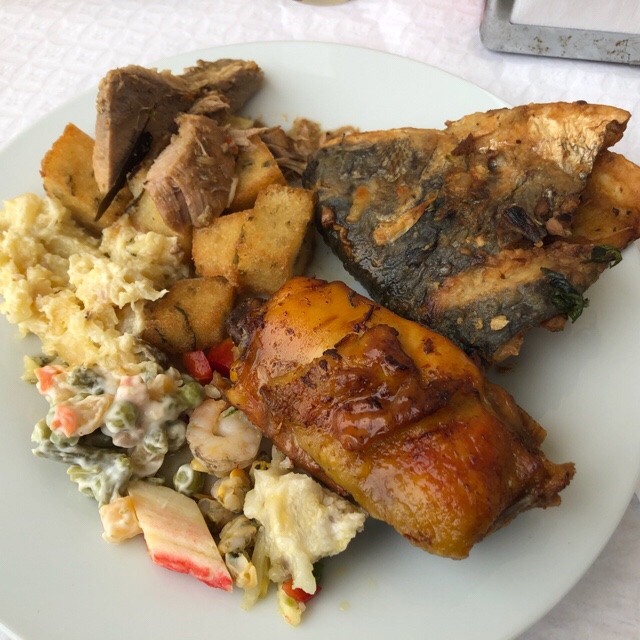 Nach unserer Wanderung sind wir noch nach São Vicente gefahren. Die Landschaft dort sah wieder anders aus und im Meer gab es ordentliche Wellen zu sehen. Ausserdem gab sein verspätetes Mittagessen in Buffetform.