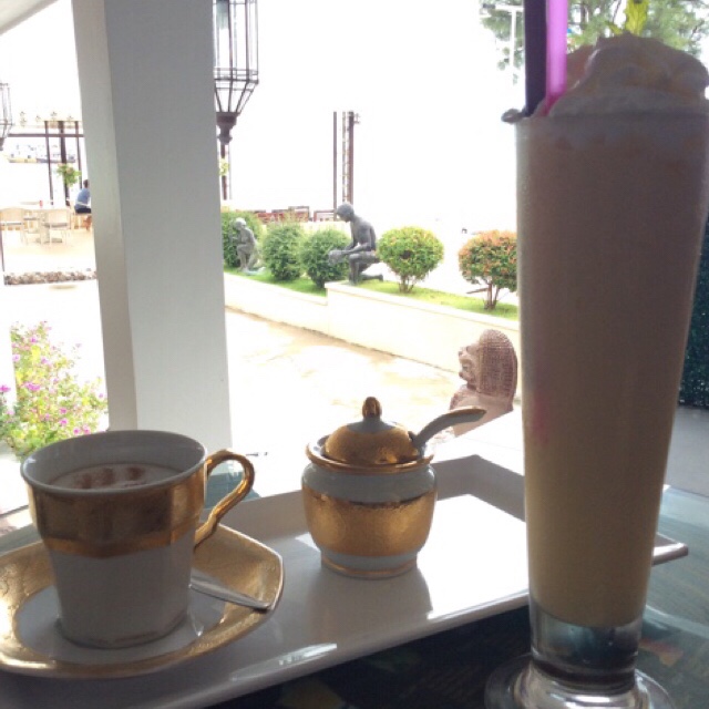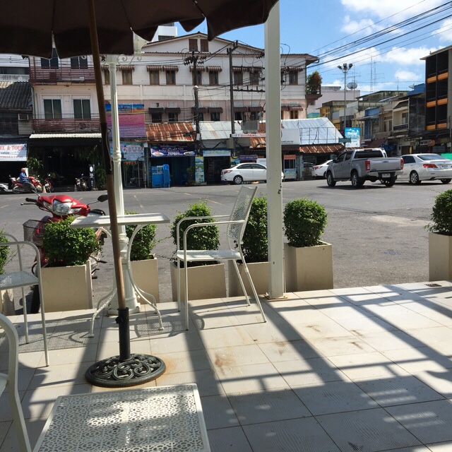 Nach Fährfahrt und 3/4 Stunde mit Van (früher hieß das immer Minibus) haben wir uns erstmal einen Cappuccino im Cafe direkt neben dem Bahnhof gegönnt um Annettes Motor ans laufen zu bekommen. Im Resort war der Kaffee zum Frühstück eher eine Nullnummer und die Bar mit den koffeinhaltigen Drinks war noch geschlossen.
