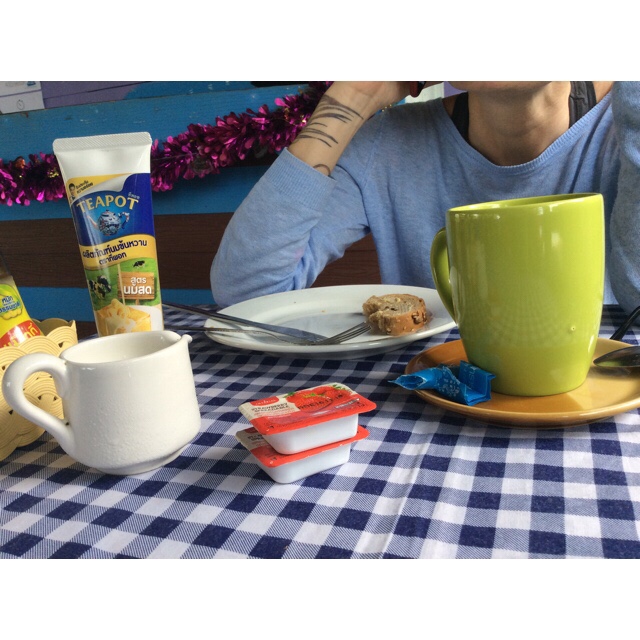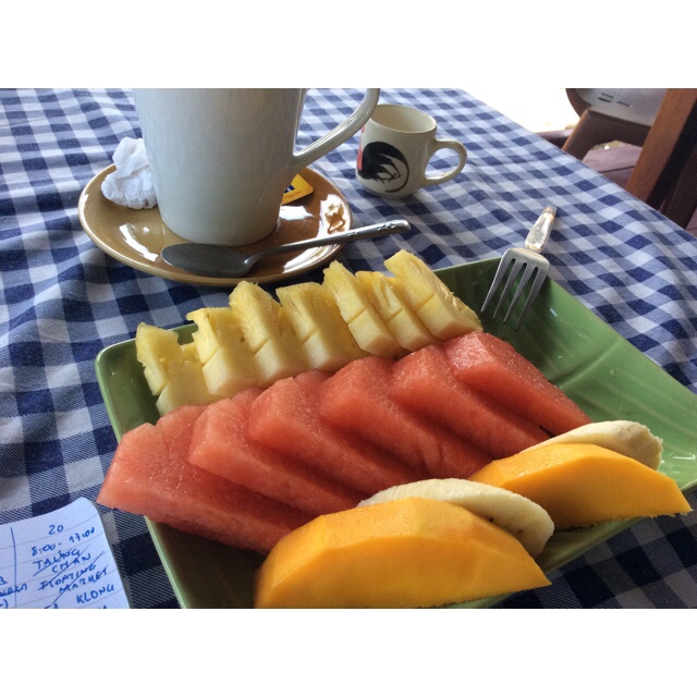 So langsam kommen die Kräfte wieder. Bei Nette gabs erstmal nur Tee und trocken Toast. Ich hab mir in der ersten Runde ein Rührei gegönnt und dann als zweites Frühstück ne Obstplatte.