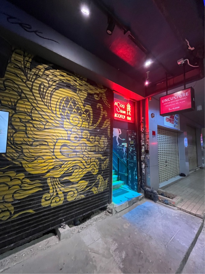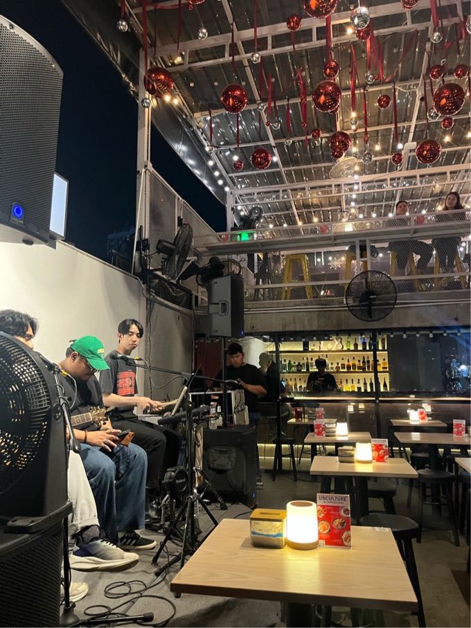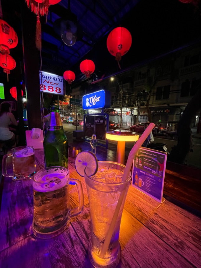 Von da ging es dann ein paar Meter weiter zu einer Rooftop Bar. Das besondere dort war – neben der Lifemusik – das man direkt oberhalb der BTS Strecke sitzt.