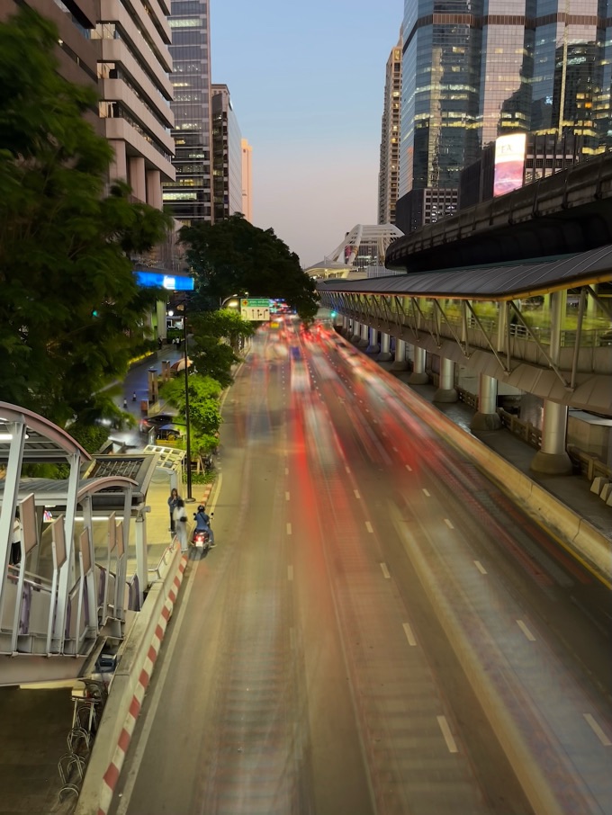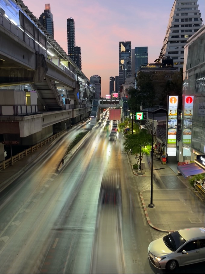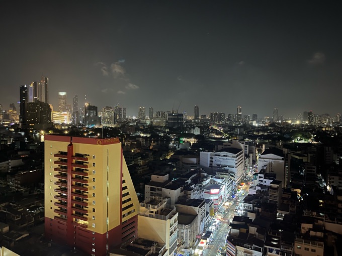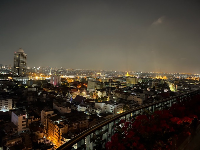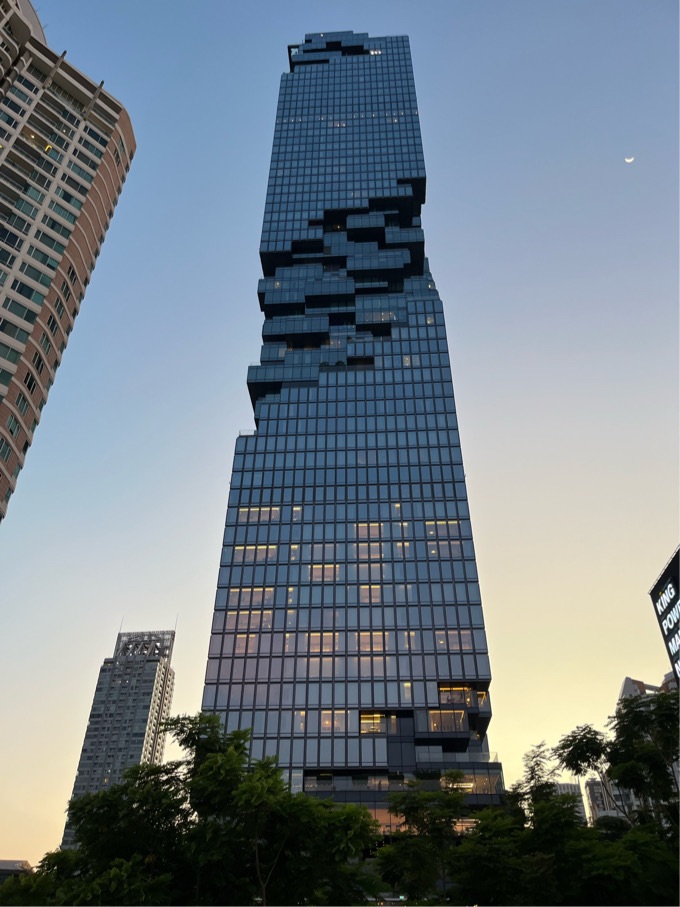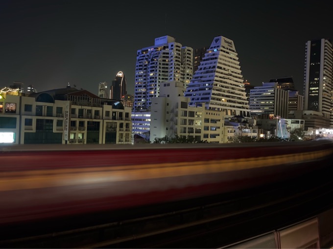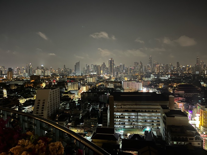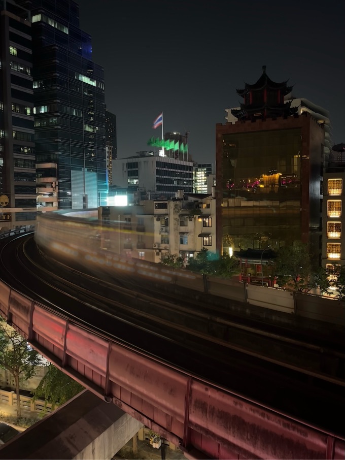 Dieses Bild habe ich abends von einer Rooftop Bar aus gemacht. Wir sind zunächst los mit der BTS und zwei Stationen später hier an diesem Gebäude ausgestiegen.