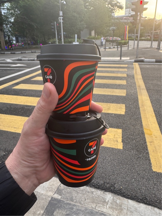 Da Annette noch geschlafen hatte, hab ich ihr danach direkt mal Kaffee besorgt vom 7-11. jetzt kann der Tag also starten – gleich treffen wir uns mit Elaine, einer alten Freundin, die hier aus KL ist.