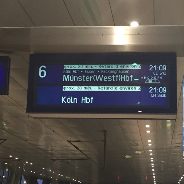 Eben sind wir hier in Frankfurt gelandet. Gerade sind wir dann direkt wieder auf den Boden der Tatsachen zurückgeworfen worden. 25 Minuten Verspätung bei unserer Bahnverbindung nach Duisburg.