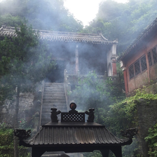 Ein weiter Tempel. Davor mit Schrein um verbrennen von Räucherstäbchen. Die Chinesen – pragmatisch wie immer – packen diese erst garnicht aus der Plastikverpackung aus, sondern verbrennen direkt alles zusammen.