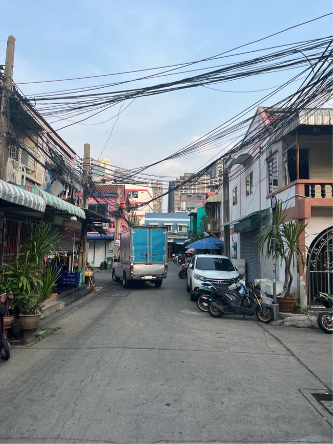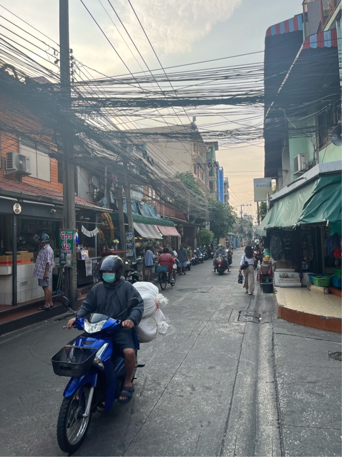 Der Stadtteil, in dem sich unser Hotel für die eine Nacht befindet, heißt Din Daeng. Anscheinend ist dieser Bereich eine Ansammlung von eingemeindeten kleinen Dörfern. Die Häuser sind größtenteils eher klein und es ist extrem wuselig – bisher der chaotischtes Ortsteil, den ich bisher in Bangkok kennengelernt habe.