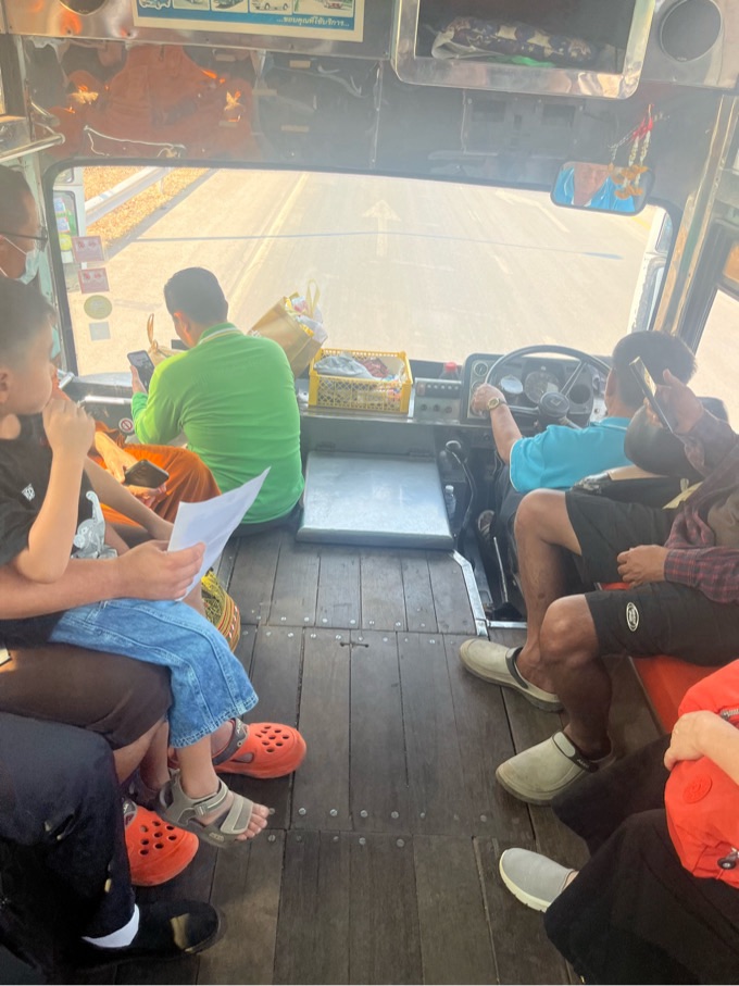 Zunächst einmal verlässt man Thailand und kriegt einen Ausreisestempel. Dann fährt man mit dem Bus auf die andere Seite zur Grenzkontrolle von Laos. Wir brauchten dort ein Visa in Arrival – dh den Pass, ein Passbild und 40$.