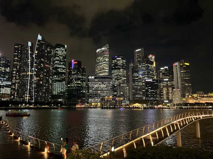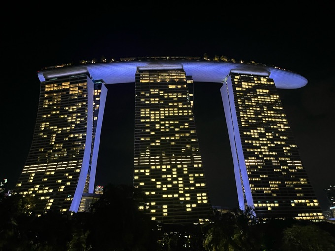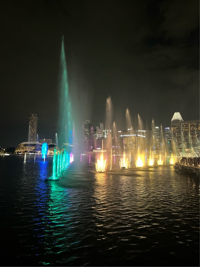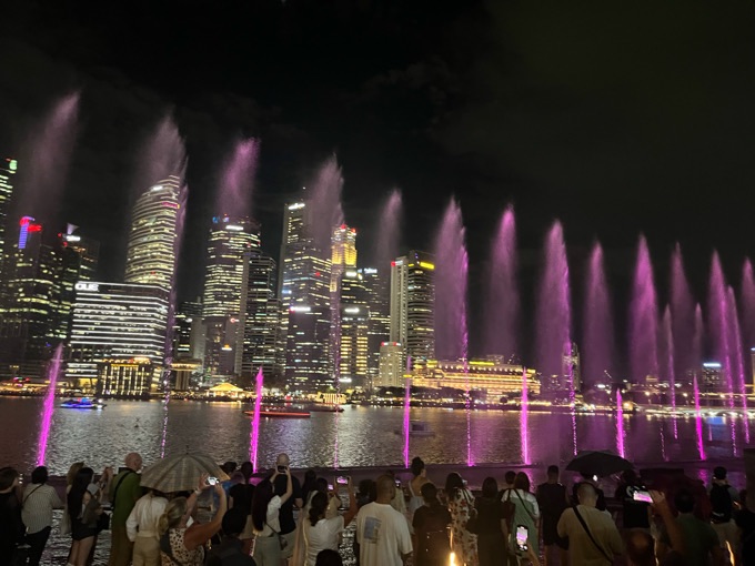 Am Fuße des bekannten Hotels Marina Bay Sand befindet sich eine riesige Mall. Und direkt davor findet abends immer eine Light Show auf dem Wasser statt – das haben wir uns natürlich nicht entgehen lassen.