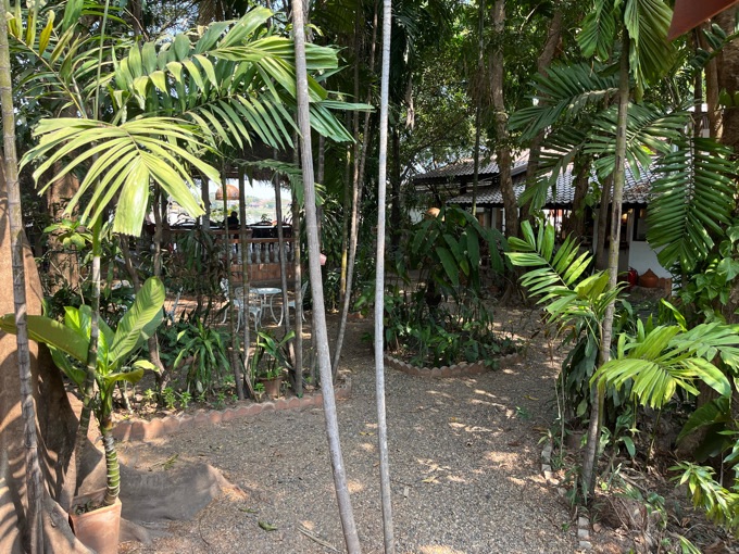Aber wie man auf den Bildern sieht, haben wir es auch ganz gut angetroffen. Durch den Garten schaut man Richtung Mekhong, von dem uns nur noch die Promenade trennt.