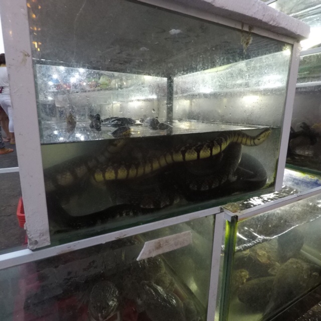 In Duong Dong, der Hauptstadt von Phu Quoc gibts einen richtig guten Nachtmarkt, wo in erster Linie gegessen werden kann. Und das ganze nicht nach dem Motto „Hund, Katze, Maus“, sondern „Muschel, Krake, Frosch“. Alles erdenkliche, was im Meer kreucht und fleucht, kann man sich hier zubereiten lassen. Auch Wasserschlangen sind zu haben (letztes Bild).