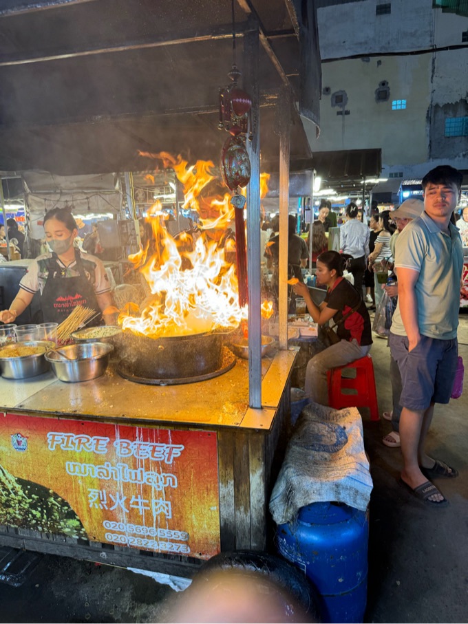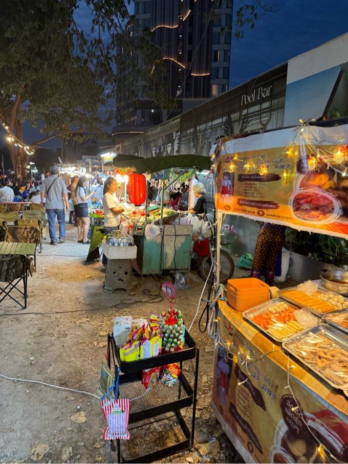 Zudem ist entlang des Mekhong ein großer Nachtmarkt, wo allerlei Tinnäf angeboten wird.