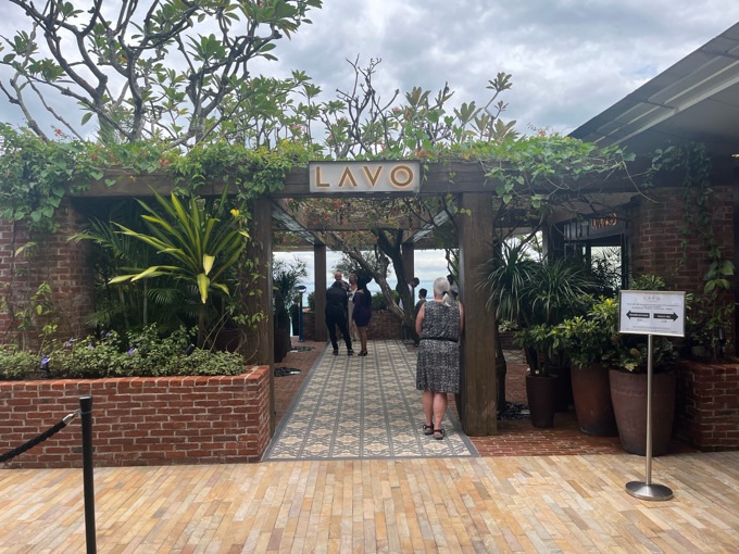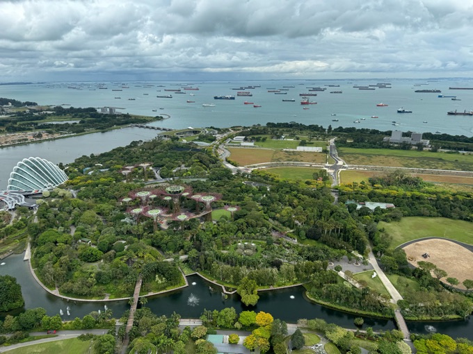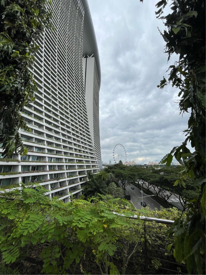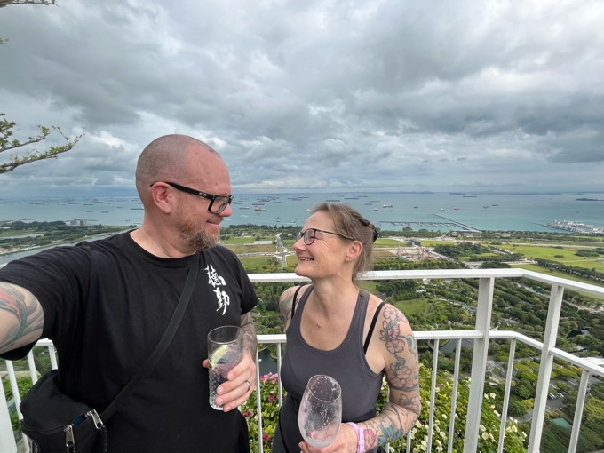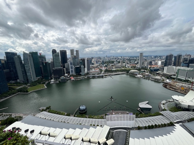 Schon bevor wir losgegangen sind, hatte ich uns einen Platz im Lavo – dem Rooftop Restaurant des Marina Bay Sands Hotels gebucht. Dort kann man am Nachmittag anstatt etwas zu essen, auch einfach einen Drink zu sich nehmen und die Aussicht genießen – das haben wir dann auch so gemacht.