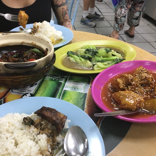 Im Warung (traditionell malaysische oder indonesische Restaurants) gab es einmal gemischte Tüte aus der Auslage. Sehr lecker, sehr günstig. Einziges Manko: dort gibt es gemeinhin kein Bier. Trotzdem: einmalkannmandasjamalmachen.