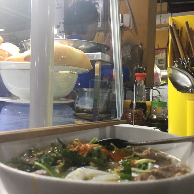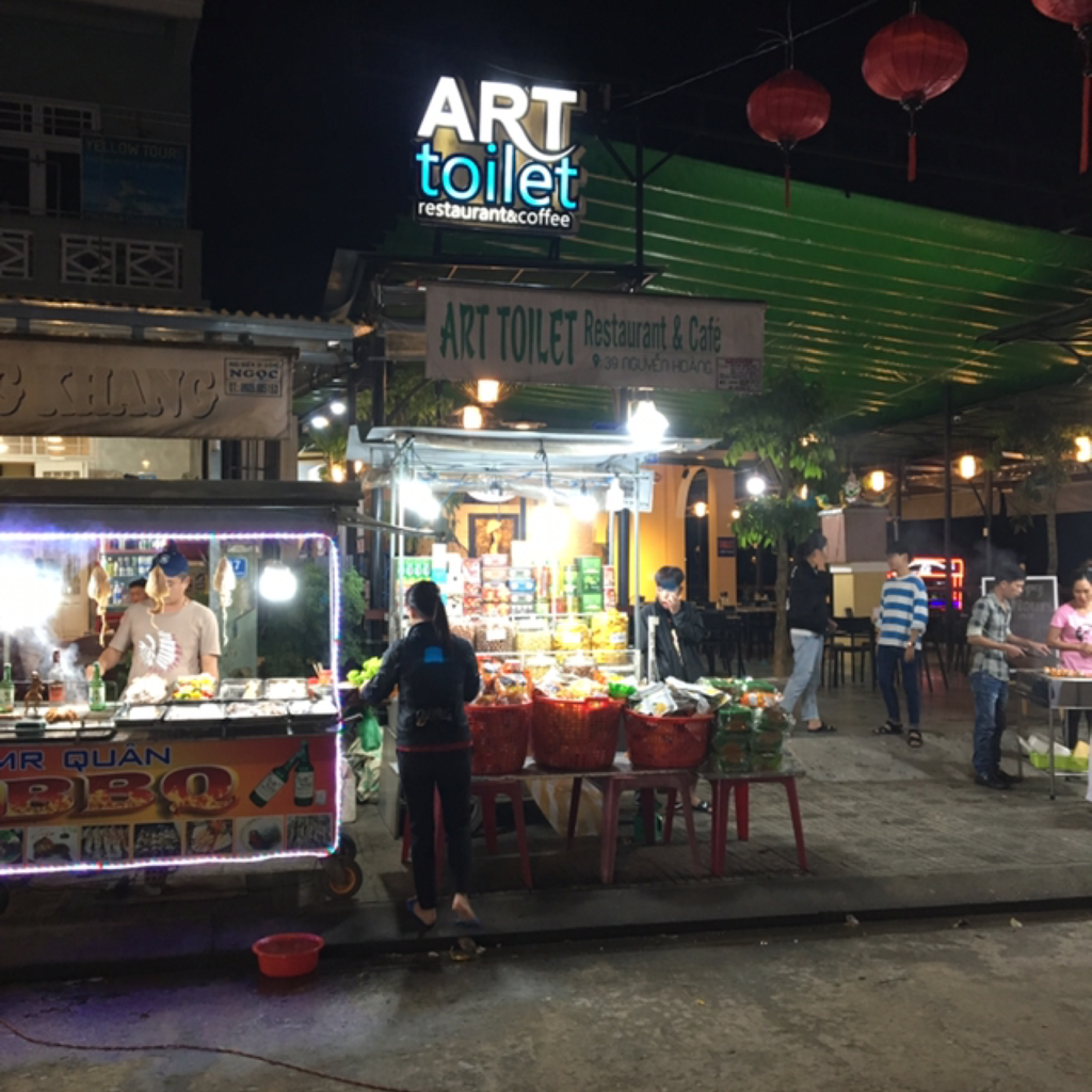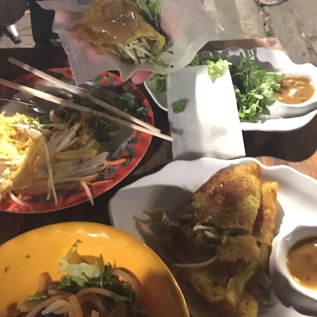 Diesmal – neben dem Nudelgericht Cao Lau – Banh Xeo. Das Essen besteht aus einem Reiseblatt, darauf kommt dann Salat und so ein frittierter kleiner Pfannekuchen – noch Soße dran und fertig ist es. Im Bild oben das zusammengelegte Gerät – rechts die Einzelkomponenten.