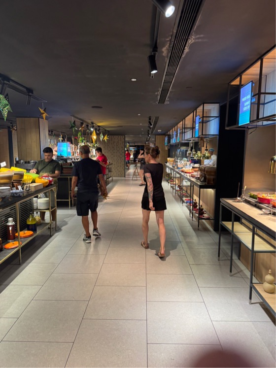 Unser Zimmer war schon schick – das wird sich vermutlich bald wieder ändern in Hongkong. Und beim Frühstück gab es so ziemlich alles, was man sich nur vorstellen konnte – westlich Brote usw mit Käse oder Marmelade, Haferflocken und andere Oatmeals, Eier in diversen Zubereitungen, aber auch indisch, chinesisch, malaysisch – Fisch, Fleisch, Gemüse, Suppen und natürlich Obst und Getränke.