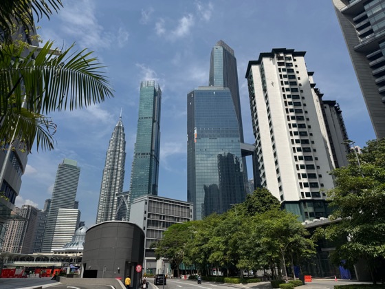 Der Zug hat vor ein paar Minuten den Hauptbahnhof KL Sentral verlassen. Die Tickets hatten wir im Vorfeld schon online gebucht – alles ganz easy.