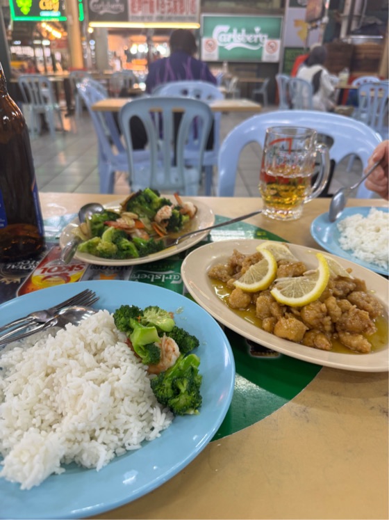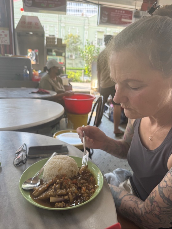 Der Zug ist gut gefüllt und das viele Gepäck irgendwie untergebracht. Nun geht es für zirka 4 Stunden Richtung Norden nach Butterworth. Von dort müssen wir noch auf die Insel Penang. Wenn alles klappt, nehmen wir die Fähre – ansonsten per Grab, da es auch eine Brücke gibt.